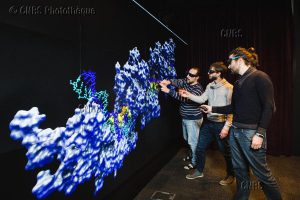 The platform offers to researchers a high dimension and stereoscopic display to explore and manipulate their data. It allows to :