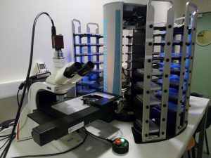 The Crystallography platform has evolved significantly since its inauguration on May 20, 2003 to meet to our current expectations. As of 2014 the platform is equipped with two latest-generation Mosquito pipetting robots allowing manipulation of biological macromolecules in viscous lipid phases and a distribution station (TTPlabtech) to prepare solutions used by the robots. The platform is equipped with incubators (18°C and 4°C), Zeiss microscopes and an automated system for visualizing crystals.