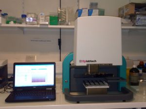 The functional genomics platform is also equipped with several apparatuses for gel/image processing and analysis, notably a Typhoon FLA9500 (GE), 2 Gel Docs (Biorad) and developer for autoradiograms (Curix), as well as a scintillation counter (Hidex) for processing radioactive samples